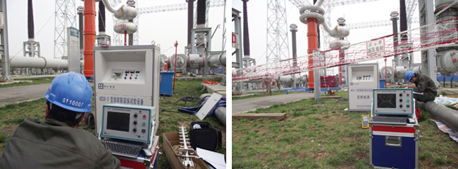 2011年4月14日湖北电科院高压所采用苏州华电生产的特高压变频谐振试验设备(成套设备包括:300kW变频电源、300kVA励磁变、250kV/6A×4台高压谐振电抗器、1000kV交流分压器)在荆门站成功进行了1000kV GIS的交流耐压试验。
