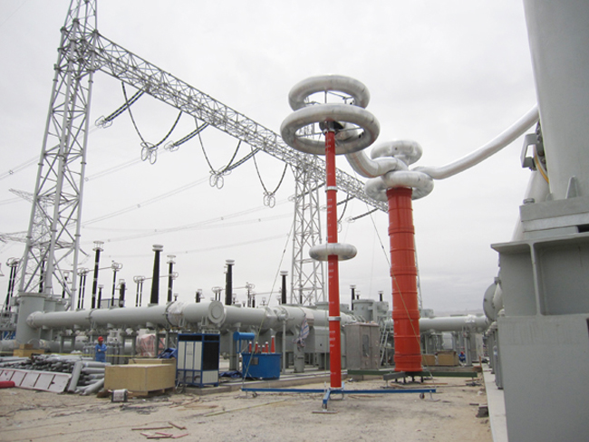 2011年7月30日,青海电科院采用苏州华电生产的1200kV/8A特高压串联谐振试验系统(成套设备包括:320kW无局放变频电源、320kVA无局放励磁变、300kV/8A×4台高压谐振电抗器、1200kV交流分压器)在国家电网青藏柴达木750kV变电站成功进行了GIS的交流耐压试验。