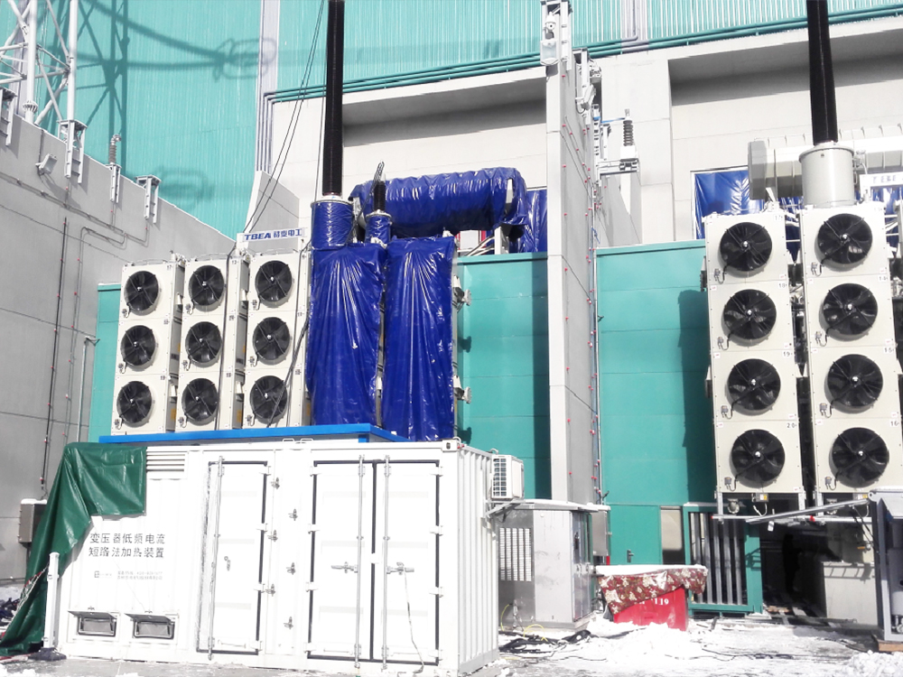 2013年9月~2014年1月,和湖北电科院联合研制的国内首套低频加热试验电源成套设备在国网公司哈密南±800kV换流站,进行了十余台405.2MVA换流变热油循环加热干燥处理